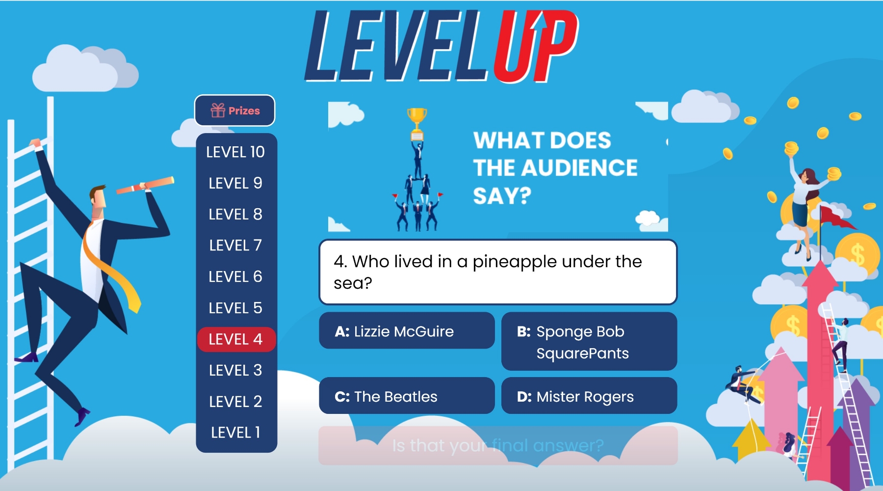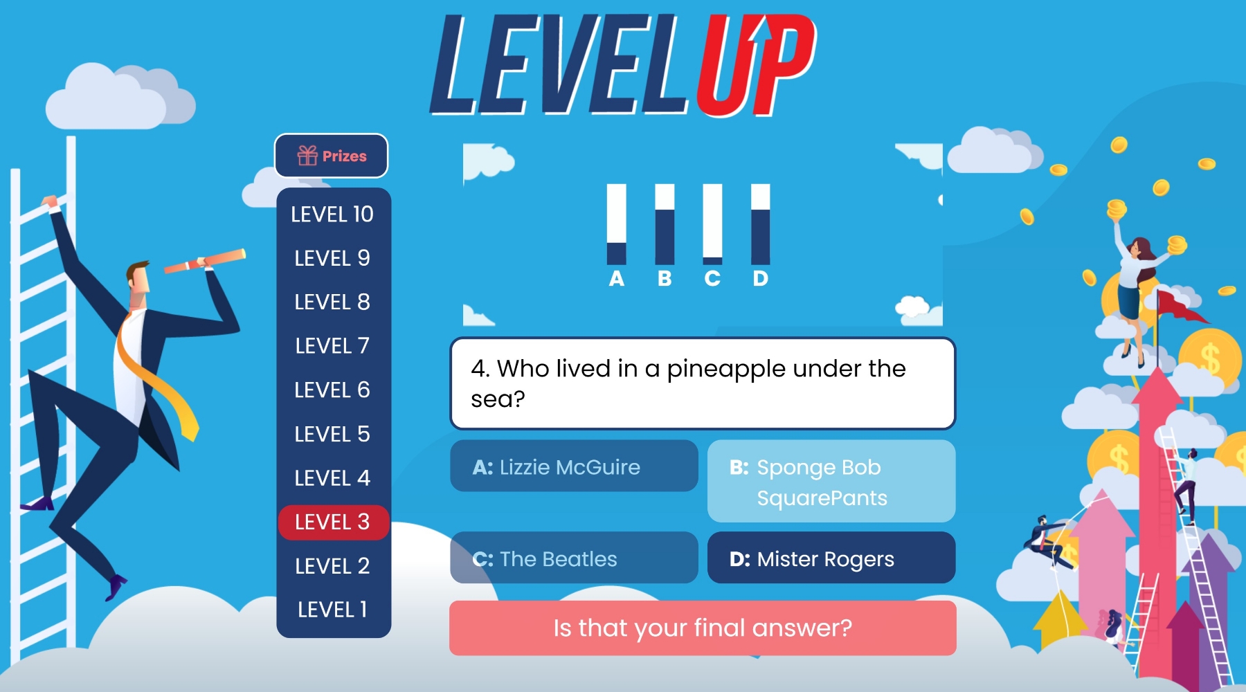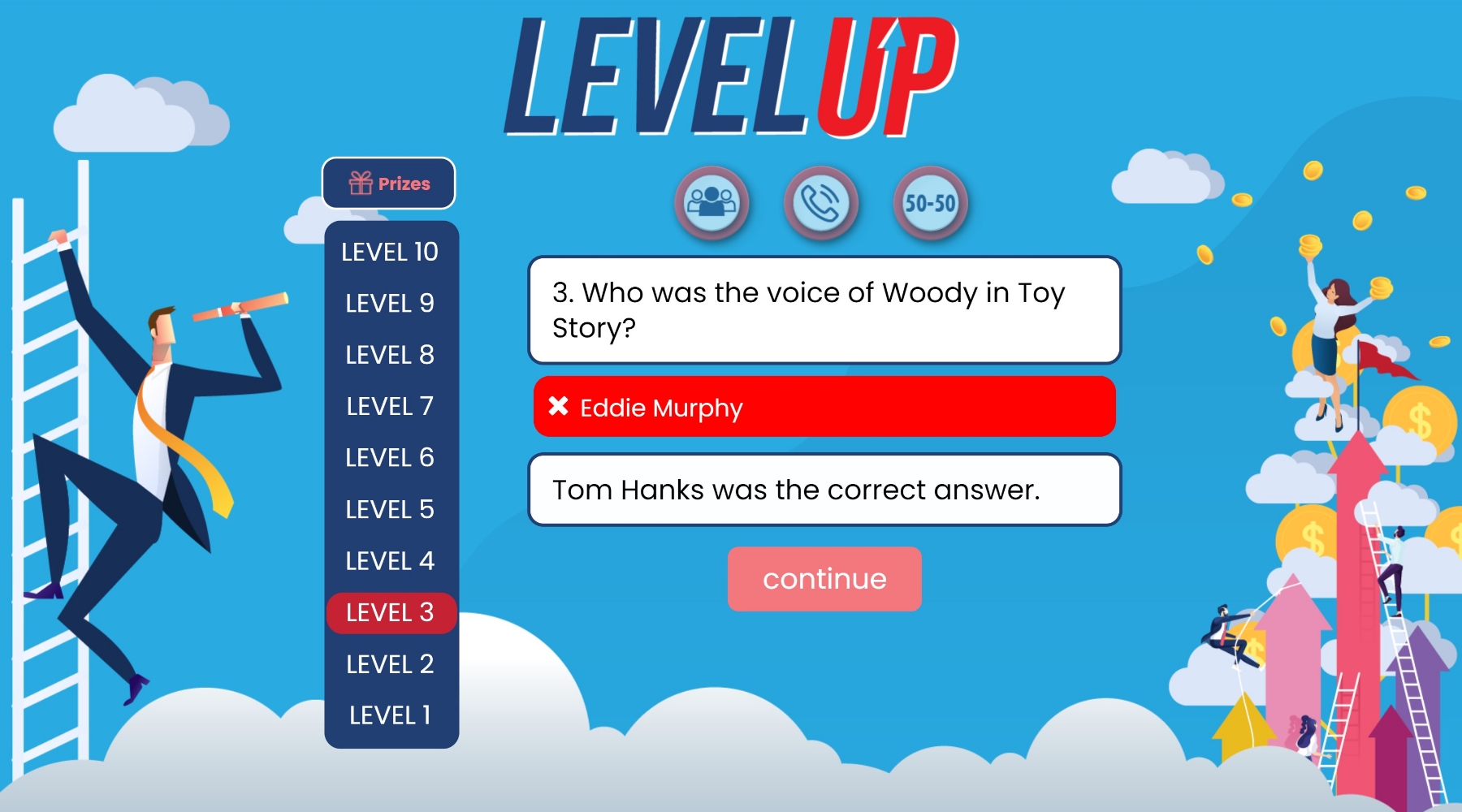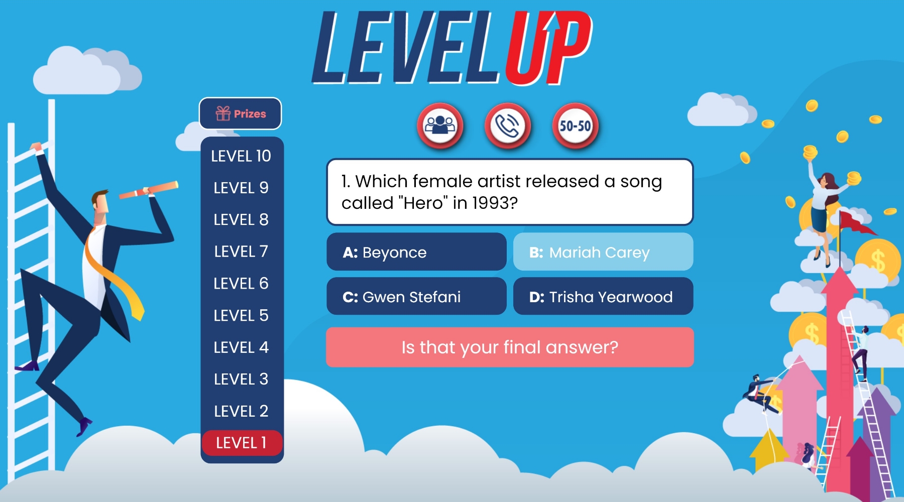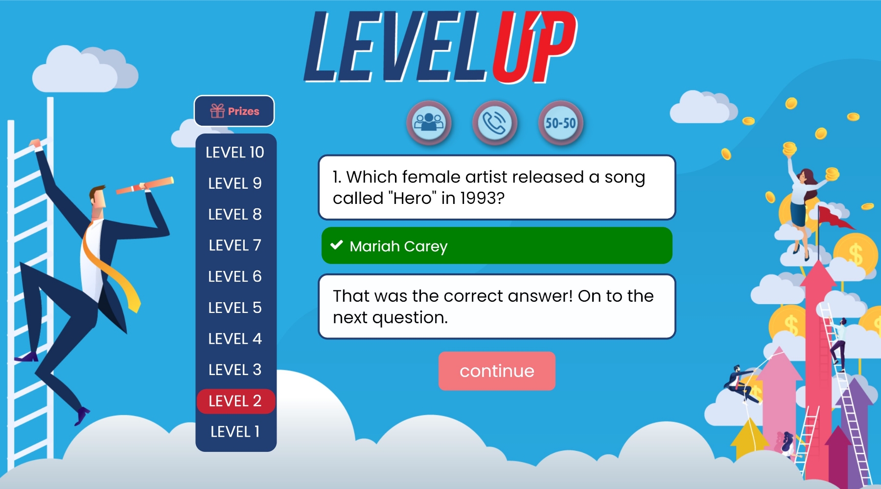 Three opportunities to use a ‘lifeline’ per game help players towards the finish line.