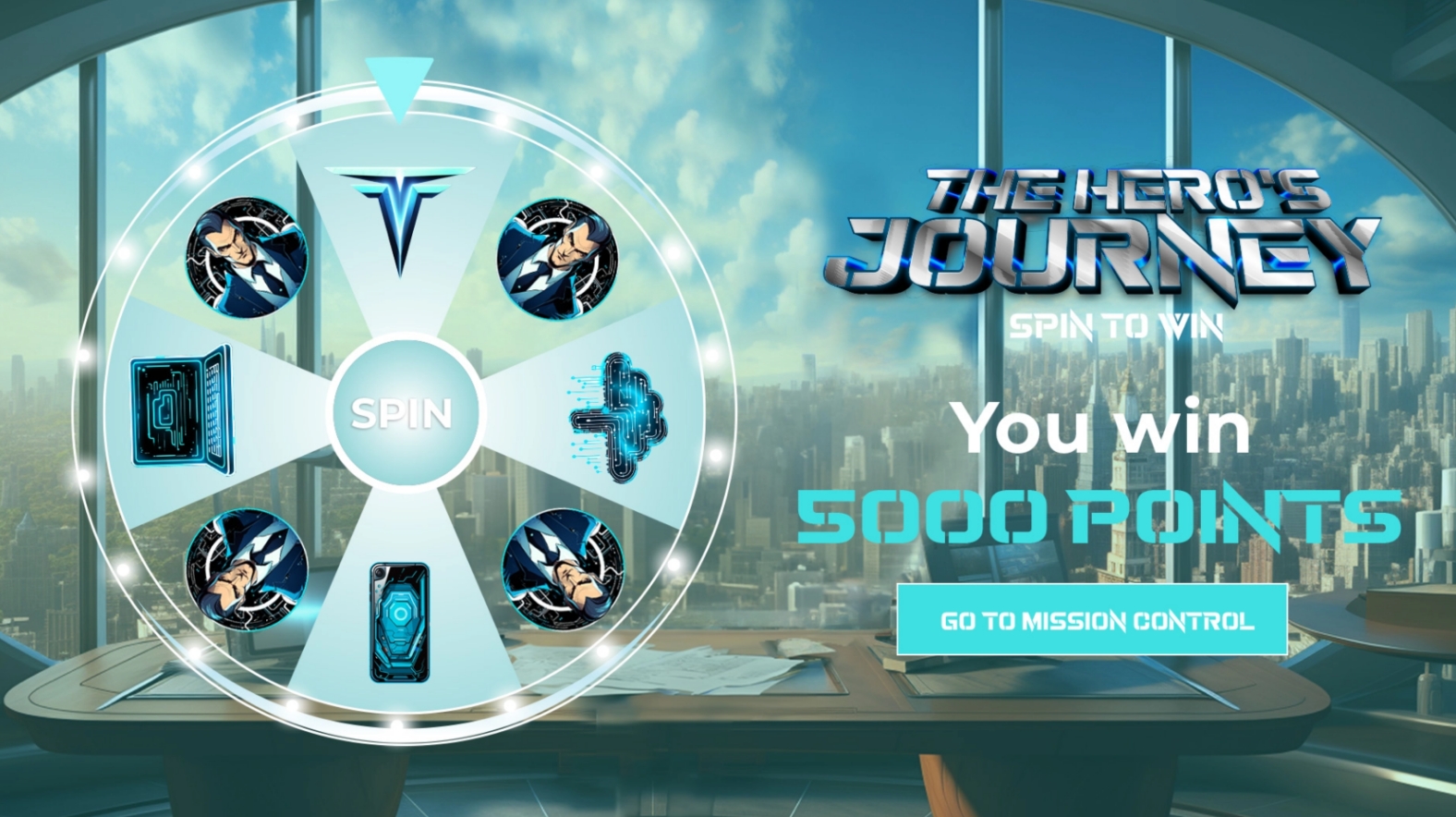 One Micro-learning Game remove One Sales Performance-based Game One Poll Game remove Prizing Options Ideal for Learn & Earn, New Product Launch, Milestone attainment, Sales Kick-Off, Onboarding new reps., etc. The Hero’s Journey Mission is fully customizable to your content and objectives, with prizes and odds to fit your budget. You are the hero of this story. As a dedicated sales representative at Trident Tech, you find yourself facing a daunting challenge. Your arch-rival, TerraFirma Enterprises, is on the brink of launching a machine that could duplicate Trident’s technology. This isn’t just another sales challenge; it’s a mission of utmost importance. The fate of Trident Tech lies in your hands.
