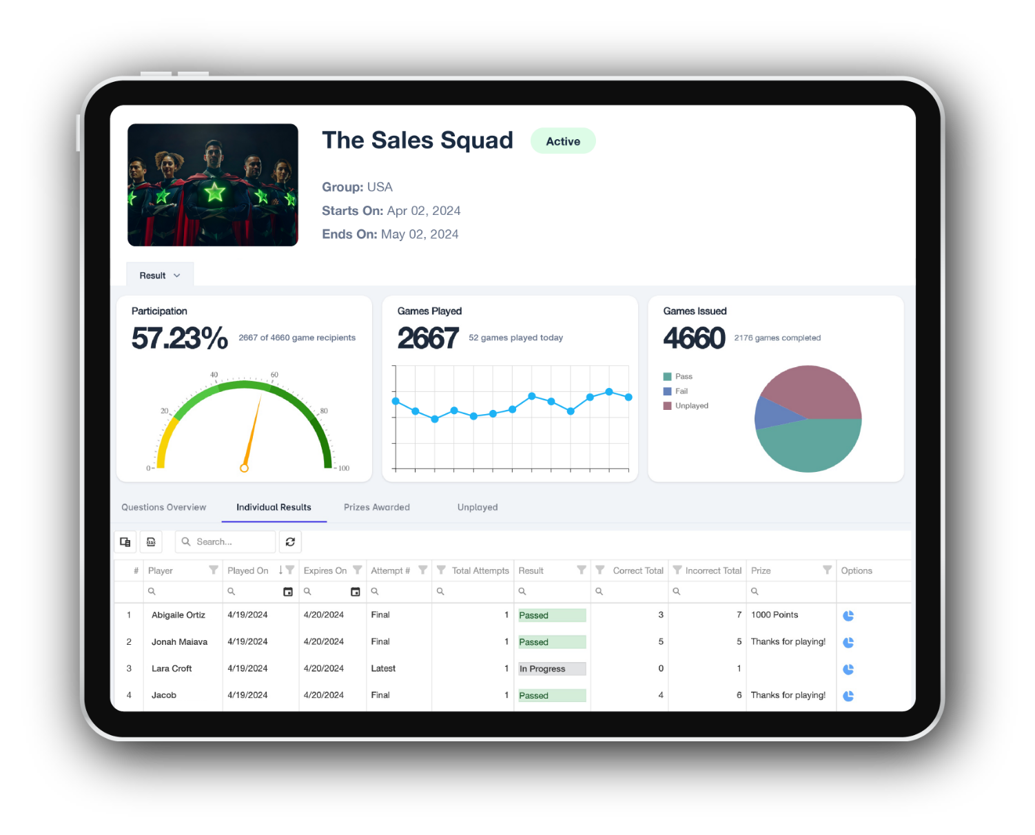 Ideal for Learn & Earn, New Product Launch, Milestone attainment, Sales Kick-Off, Onboarding new reps., etc.